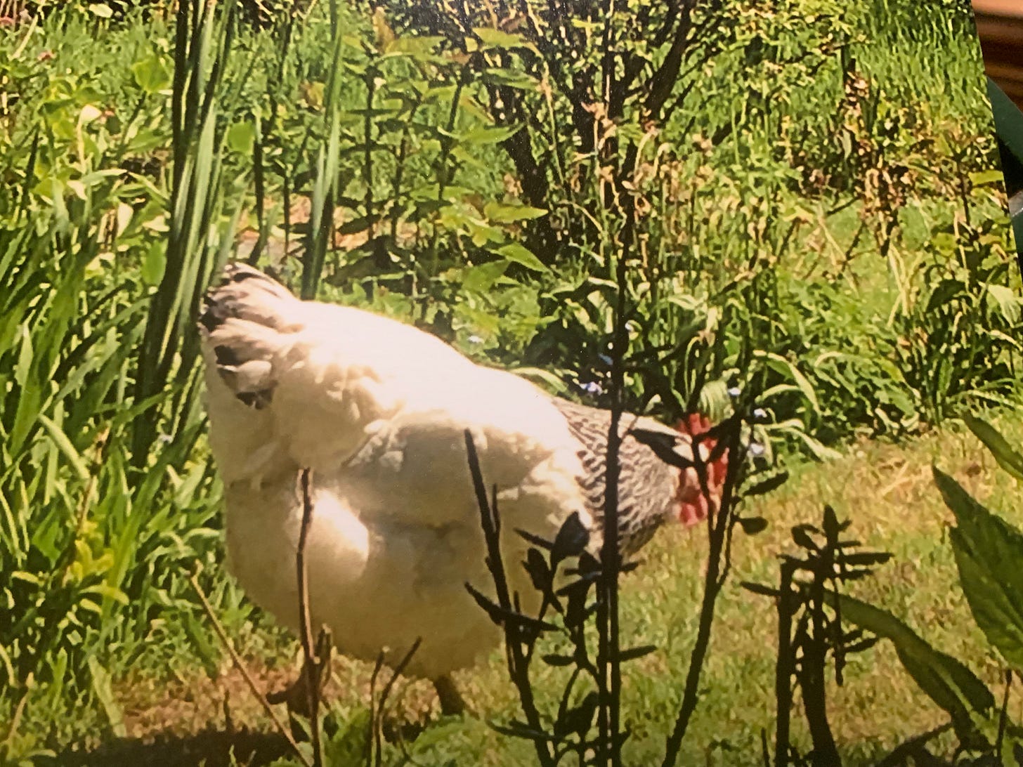 There is moisture in the air but in indolent mood I decide to take cushions and my book and spend an hour or so, not taking my mobile phone to gauge the time even, and lie on the old wooden garden lounger amongst the busily scratching hens. I am liberated from fear of the cockerel squaring up for a fight with me; he got chased by my daughter’s little dog who was staying here for a few days; since then he has lost his mojo completely and just stands around looking forlorn, showing no interest in anything apart from the occasional rape of a hen; I so miss his crowing, but definitely not his aggression towards me. It’s hard to get out of the habit of carrying a stick with me everywhere outside to fend him off if he decides to attack me; but such a relief, as when he did attack, I used to be left shaking with fear, traumatised, remembering times when he had drawn blood. I read and read, thoroughly content, moved by the last chapters of the book. As I lie there gentle rain falls but I don’t get up; I am half under the trees and so comfortable there in my cushioned ease; it really doesn’t matter, I remind myself, if I get a little damp ....the hens are happy, there is a huge bumble bee visiting the blossom of the apple trees , and as I turn the last pages I become aware of the midges, just a few itchinesses on my head to begin with, which I ignore, but then there are many swirling around me in the soft air, and I watch them in fascination, remembering the headlines read this morning and a little comforted, reassured by their presence here, despite their irritations of my skin, especially amongst my hair. But in the end, persecuted by the itching, I retire inside to finish my book.